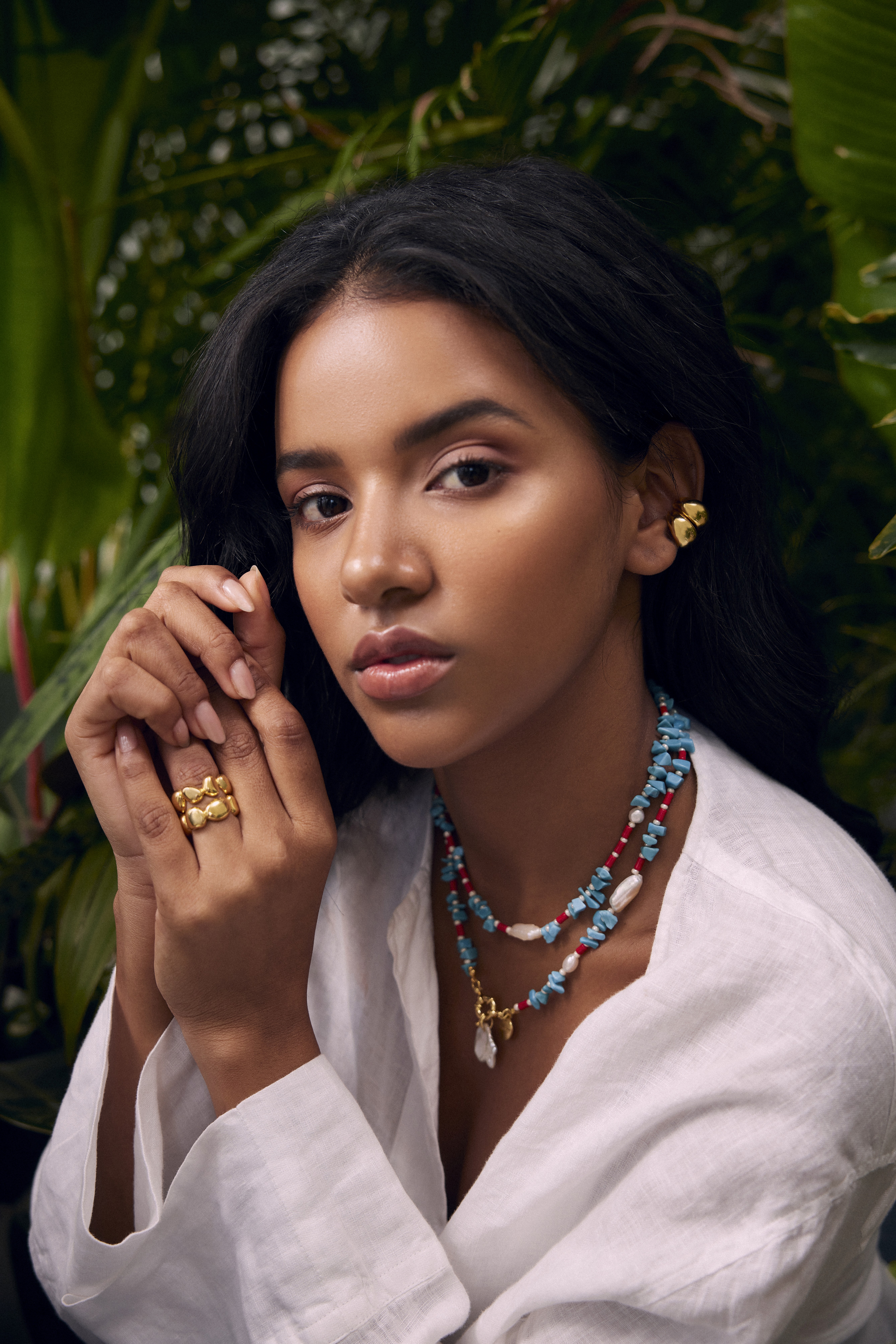 Our work for Love Letter focused on a "Tropical Minimalist" aesthetic. We used the natural, matte textures of large leaves to create a moody backdrop that let the high-polish gold and pearls really stand out. Instead of traditional jewelry lighting, we leaned into a warm, shaded environment that feels intimate and sophisticated, giving the brand an editorial edge that works perfectly for a modern digital audience.